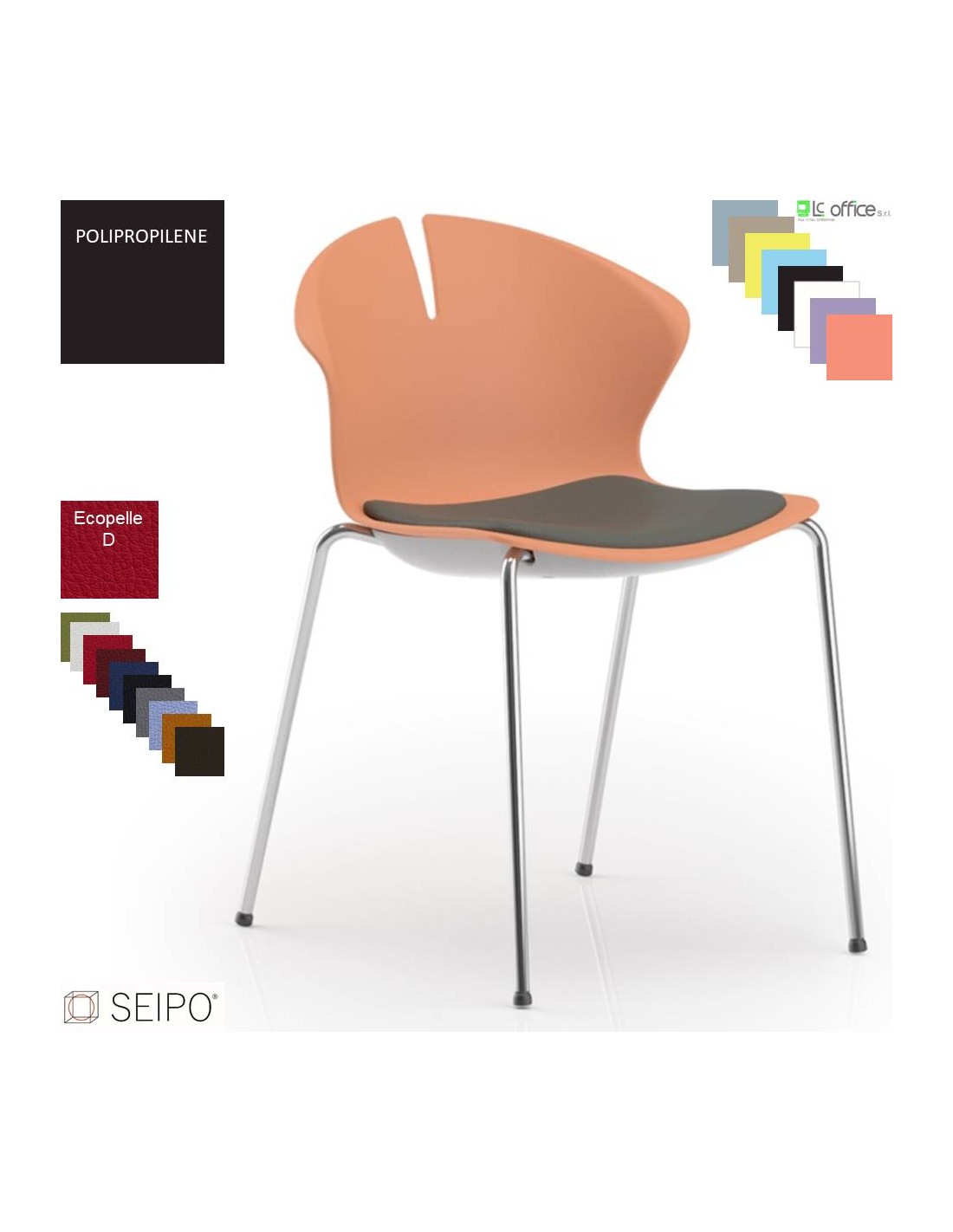 OVER EASY SOFT OV07 Sedia visitatore, impilabile, telaio cromato, imbottita, rivestimento in ecopelle D, Base a 4 gambe in acciaio, SEIPO, monoscocca in Polipropilene