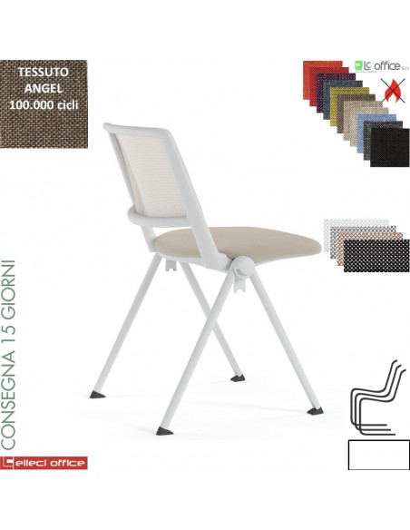POP sedia impilabile sedile imbottito schienale rete cover telaio 4 gambe verniciato bianco rivestimenti tessuto ANGEL Class 1 IM