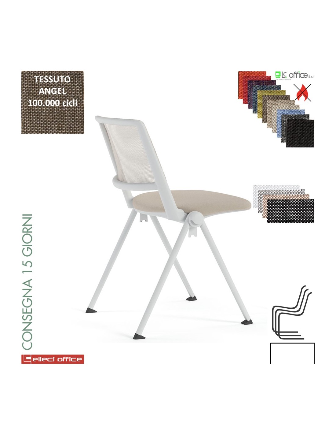 POP sedia impilabile sedile imbottito schienale rete cover telaio 4 gambe verniciato bianco rivestimenti tessuto ANGEL