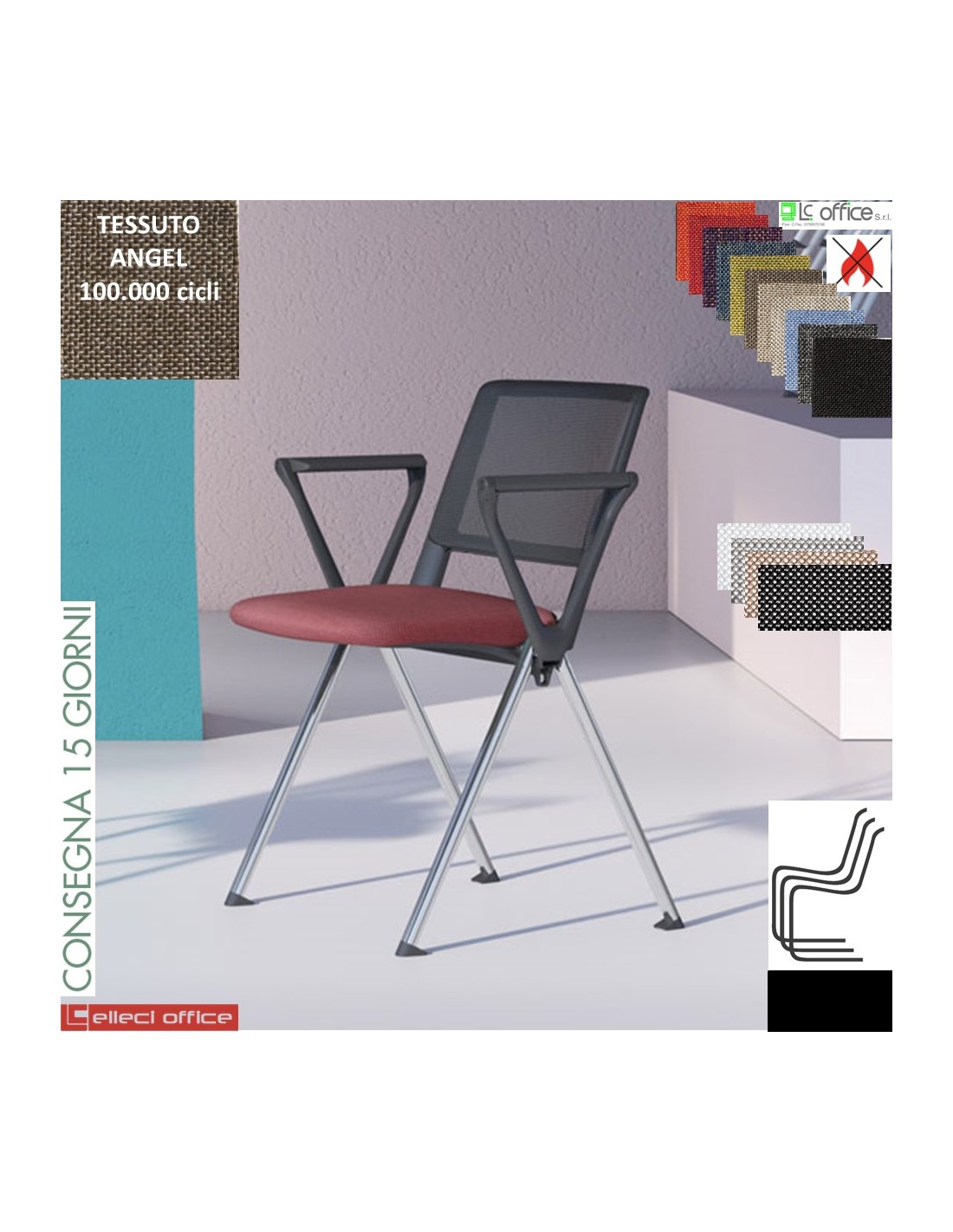 POP Sedia impilabile sedile imbottito schienale rete cover neri telaio 4 gambe cromo tessuto ANGEL Class 1 IM