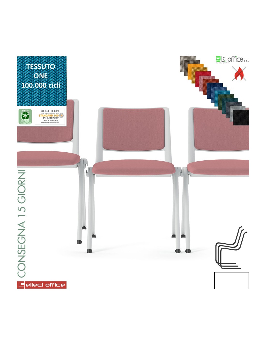 POP Sedia impilabile sedile e schienale imbottiti cover e telaio 4 gambe verniciato bianco rivestimenti tessuto ONE class 1 IM