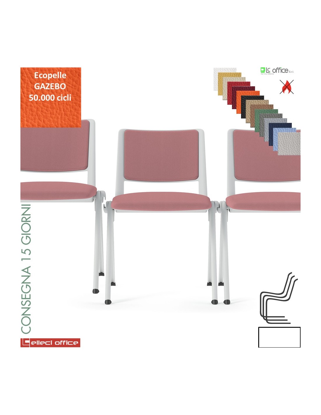 Sedia impilabile sedile e schienale imbottiti cover e telaio 4 gambe verniciato bianco rivestimenti ecopelle GAZEBO Class 1 IM
