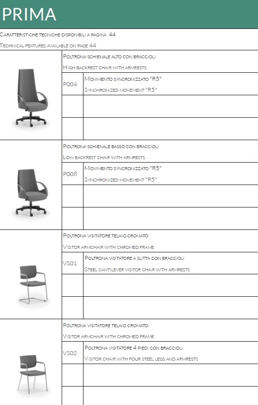 PRIMA P004 Poltrona direzionale imbottita con schienale alto e braccioli fissi movimento syncro R5 SEIPO Ecopelle D