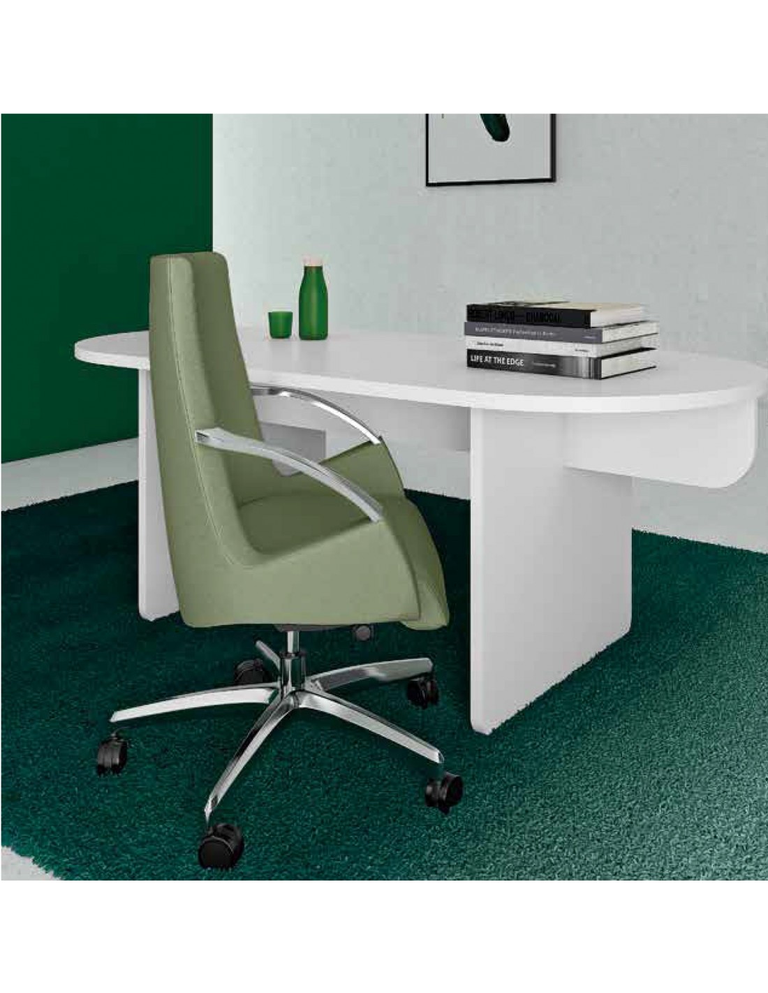 PRIMA P0008 Poltrona semi direzionale imbottita con schienale basso e braccioli fissi movimento syncro R5 SEIPO Ecopelle D2