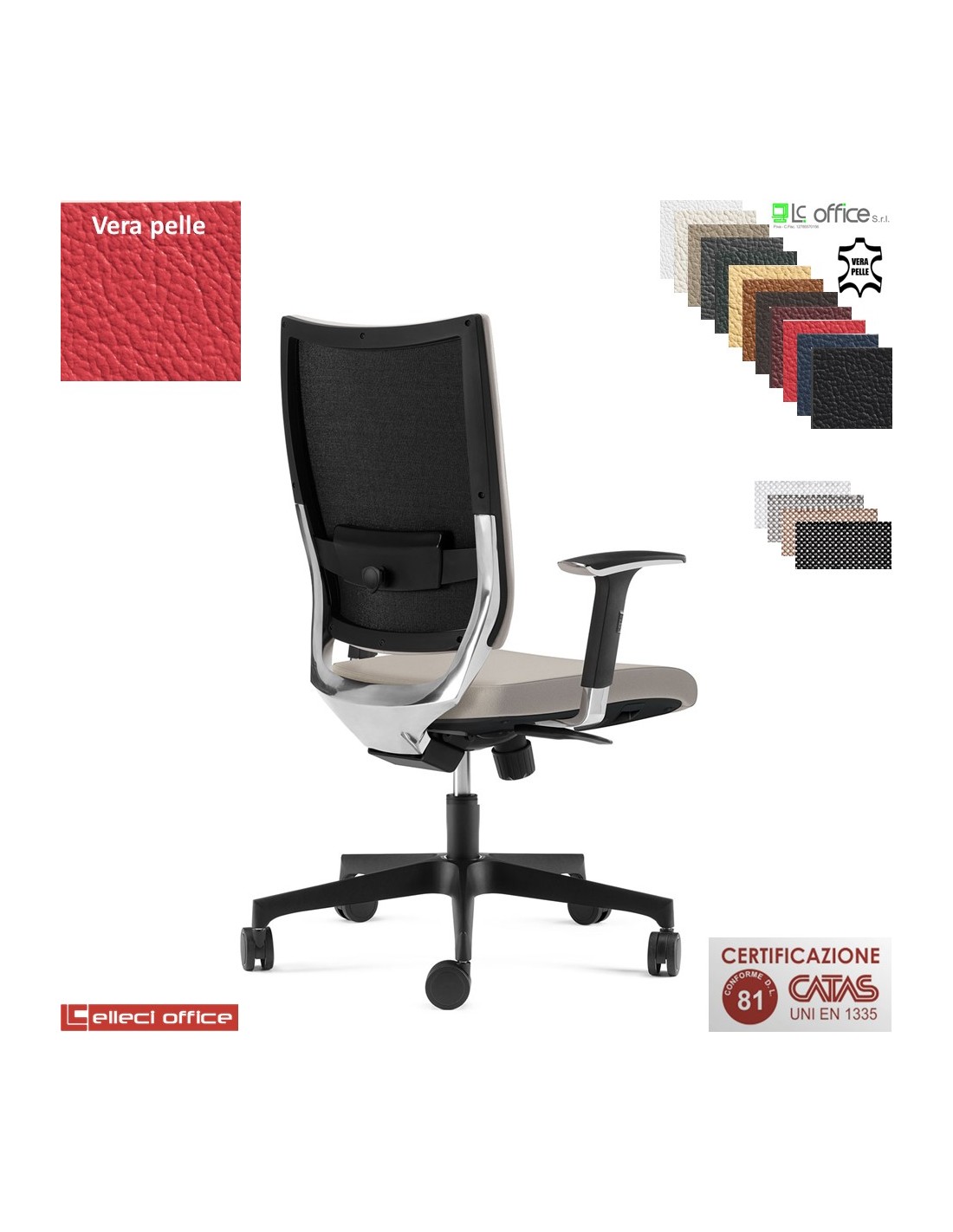 SHINE Poltrona semi direzionale, schienale nylon e alluminio, supporto lombare, movimento sincronizzato multiblock con supporto in alluminio, traslatore sedile, base alluminio braccioli in alluminio nylon con pad in polipropilene nero e profilo cromo rivestimento VERA PELLE
