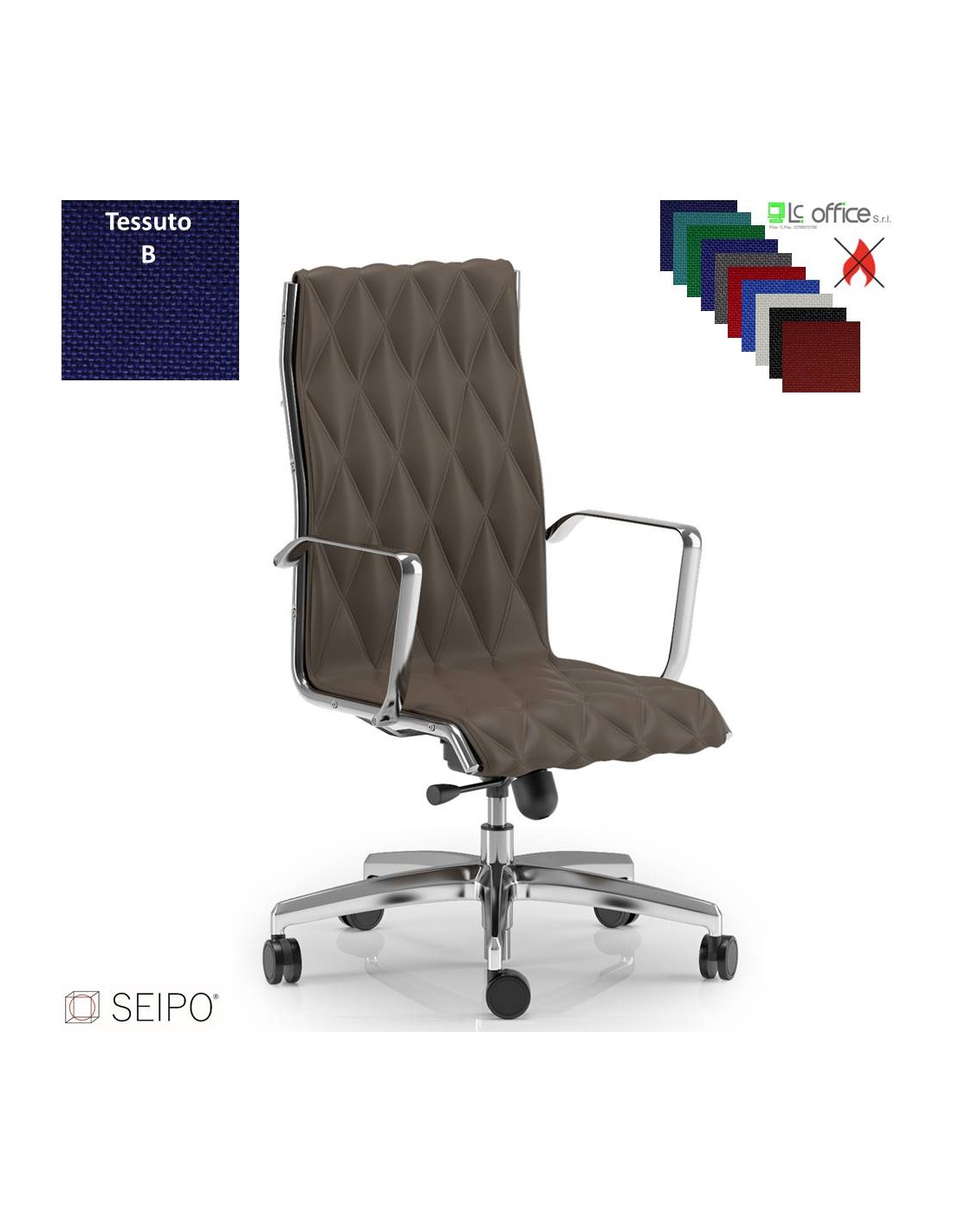 ROMBO R002 Poltrona schienale alto imbottito cuciture a "rombo", braccioli movimento oscillante "B" tessuto B