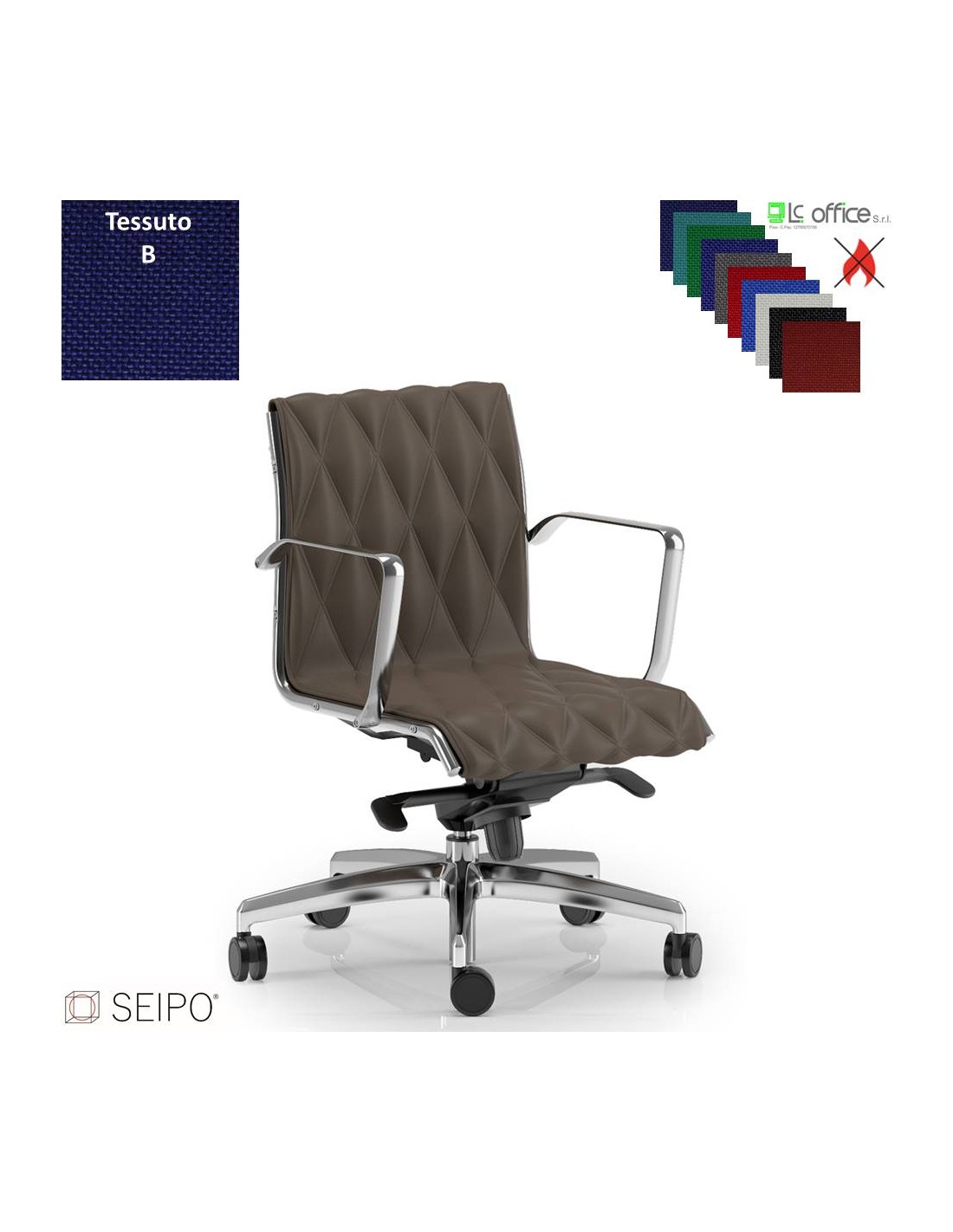 ROMBO R008 Poltrona schienale basso imbottito cuciture a "rombo", braccioli movimento oscillante fulcro avanzato "D" tessuto B
