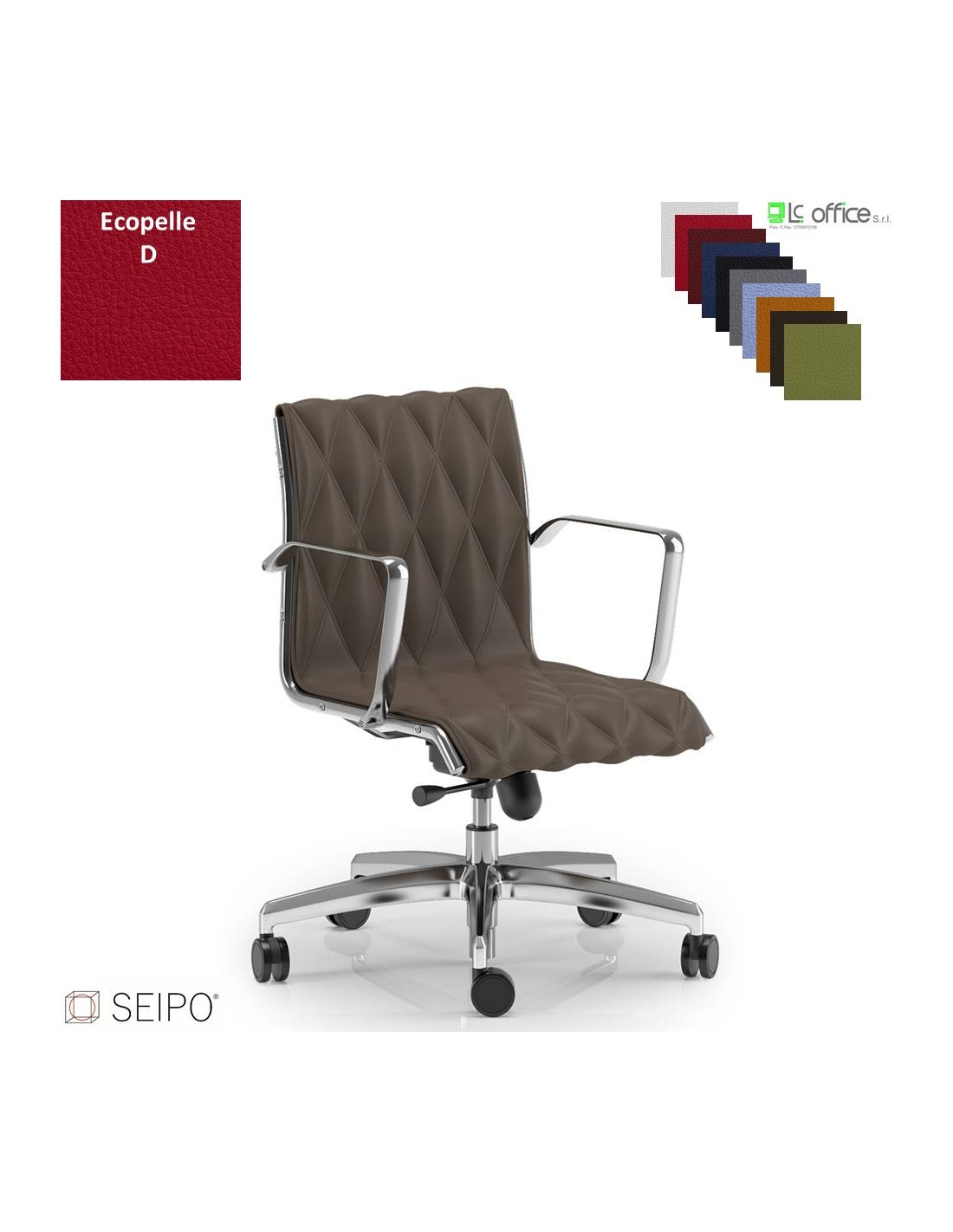 ROMBO R006 Poltrona schienale basso imbottito cuciture a "rombo", braccioli movimento oscillante "B" ecopelle D SEIPO
