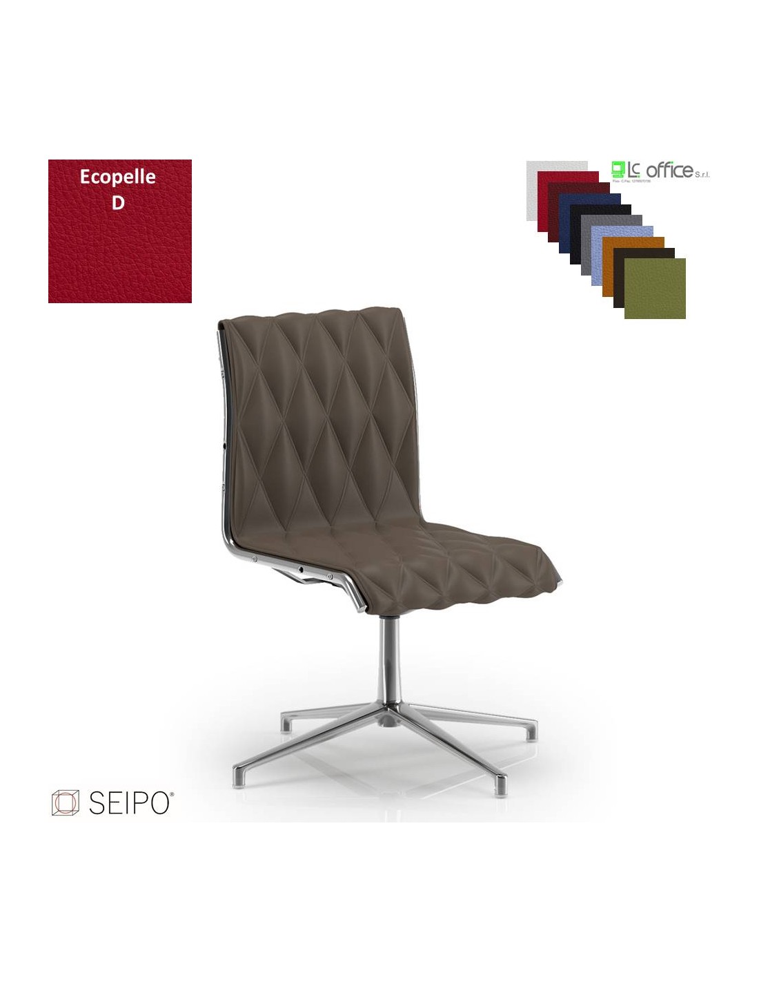 ROMBO R014 Poltrona schienale basso imbottito cuciture a "rombo", senza braccioli base girevole 4 razze cromate ecopelle D SEIPO