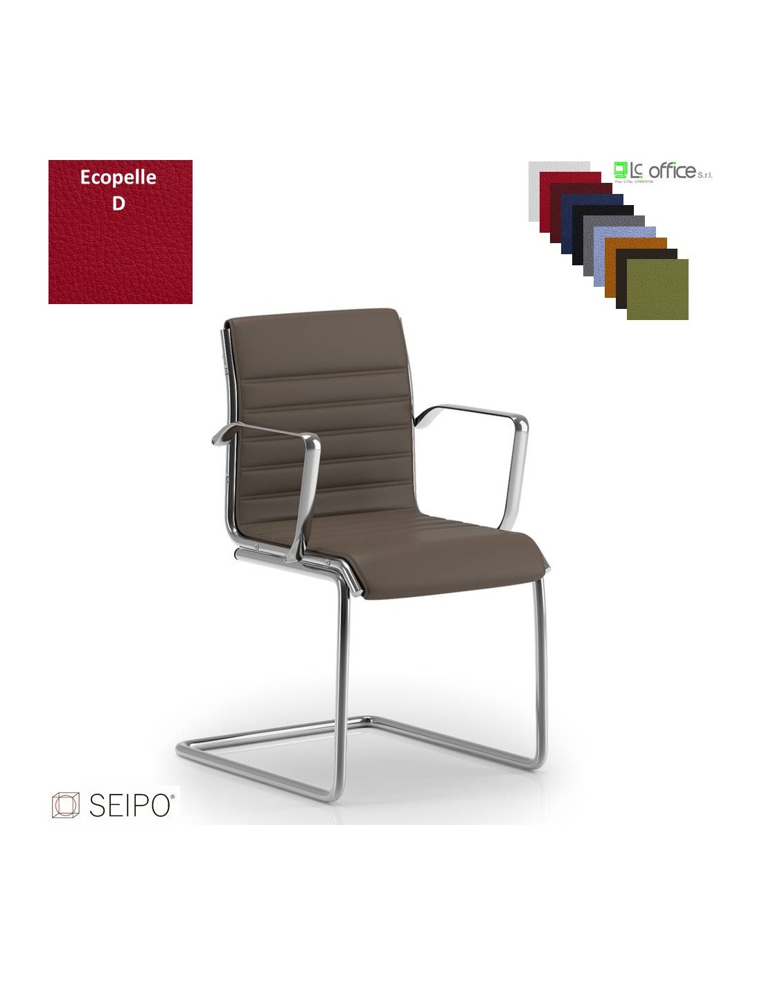 ROMBO R030 Poltrona a slitta imbottita cuciture "lineari" con braccioli ecopelle D SEIPO