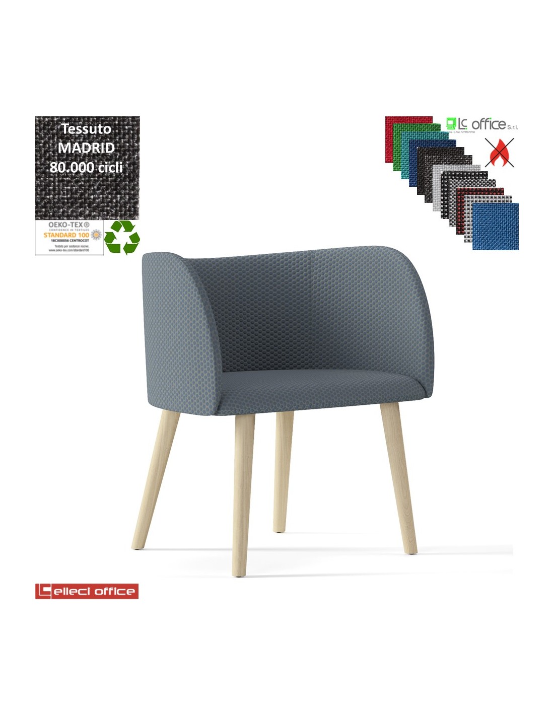 Round Poltroncina base 4 gambe in legno frassino verniciato naturale rivestimento tessuto MADRID class 1IM