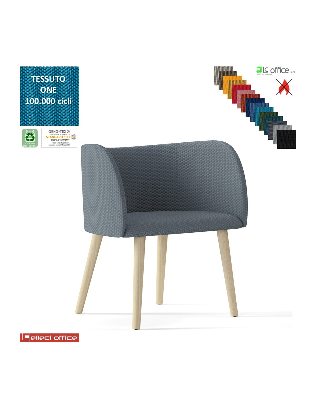 Round Poltroncina con base a 4 gambe in legno frassino verniciato naturale rivestimento tessuto ONE class 1 IM