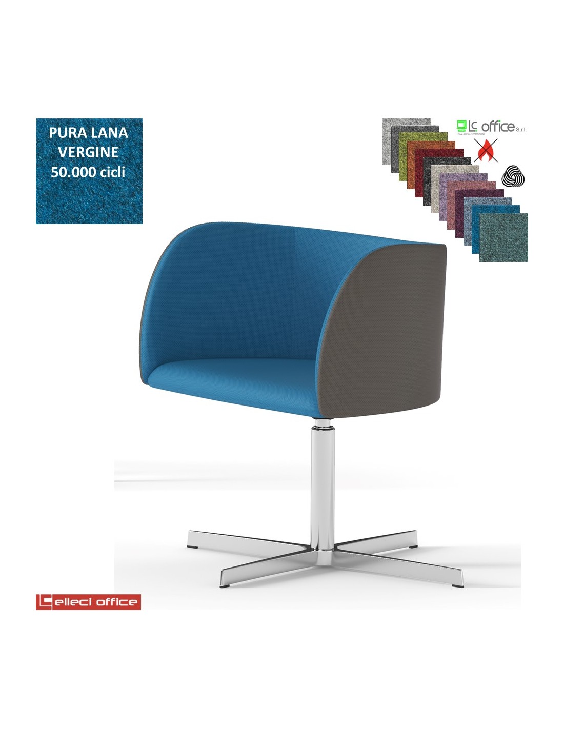 Round Poltroncina girevole base 4 razze in alluminio rivestimento in Lana vergine Class 1 IM