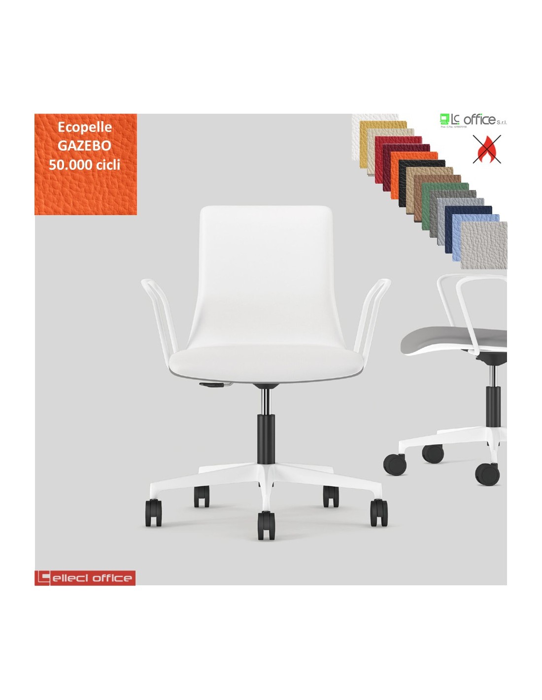 SORI Poltroncina girevole sedile schienale imbottiti braccioli base bianco ruote alzata gas rivestimento ecopelle GAZEBO Class 1IM
