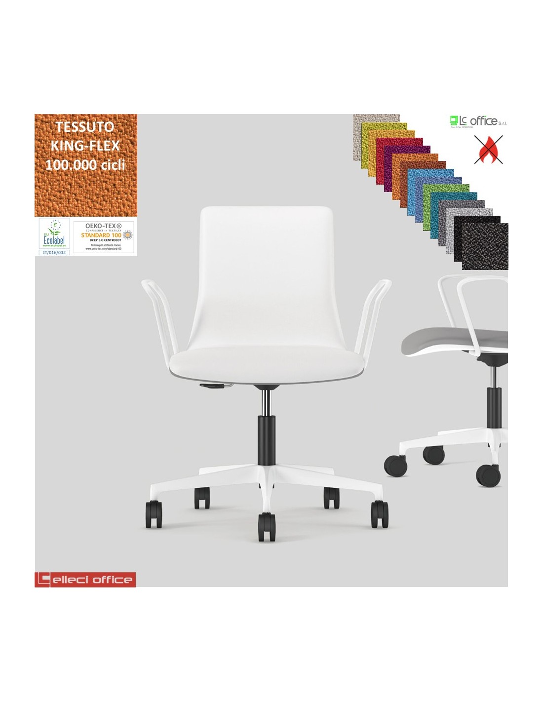 SORI Poltroncina girevole sedile schienale imbottiti braccioli base bianco ruote alzata gas TESSUTO KING FLEX class 1IM