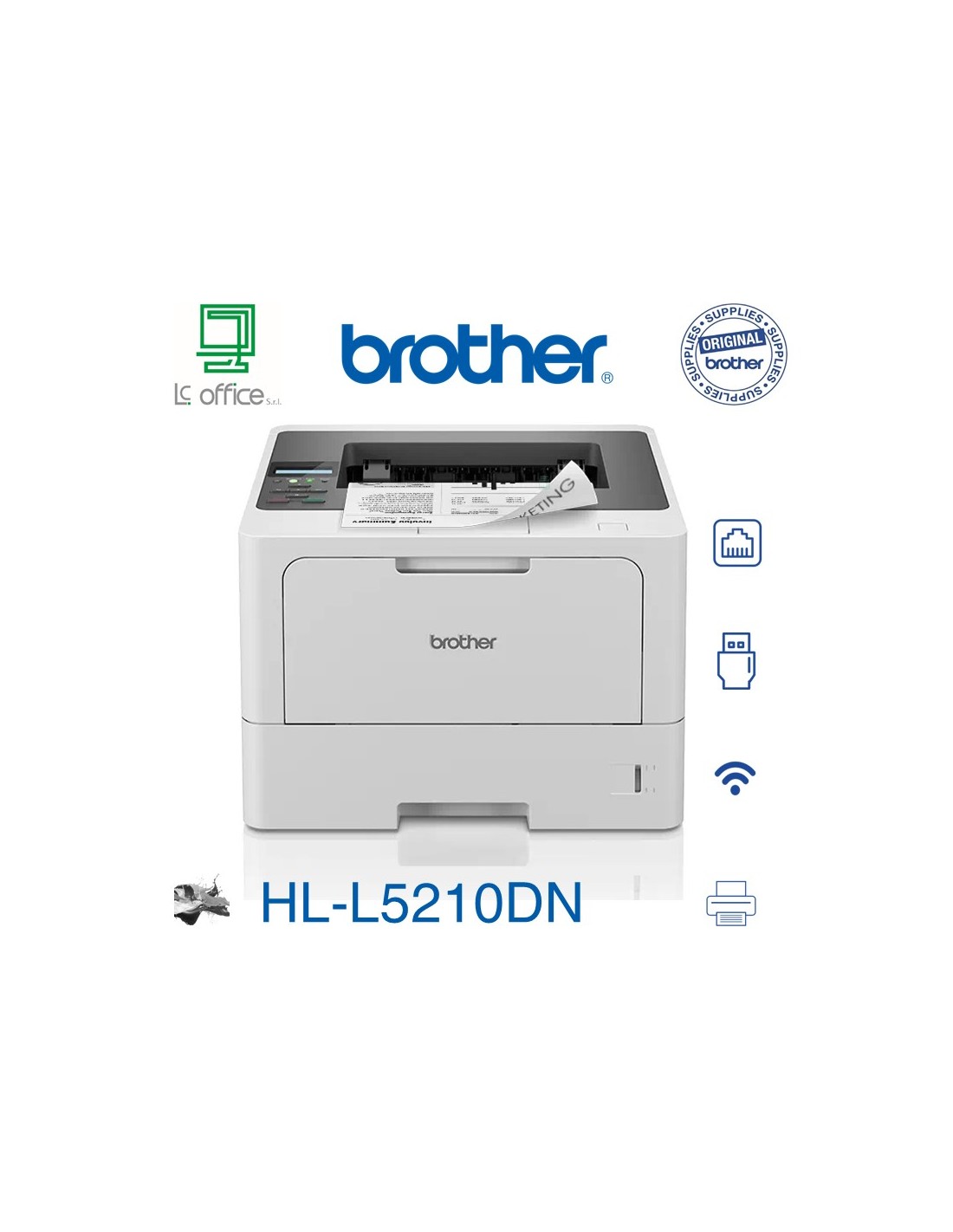 Creato per le aziende, questo dispositivo è progettato per offrire prestazioni professionali grazie alla stampa ad alta velocità e di elevata qualità. La stampante HL-L5210DN offre, inoltre, la flessibilità necessaria per adattare la capacità carta alle specifiche esigenze di ogni azienda.