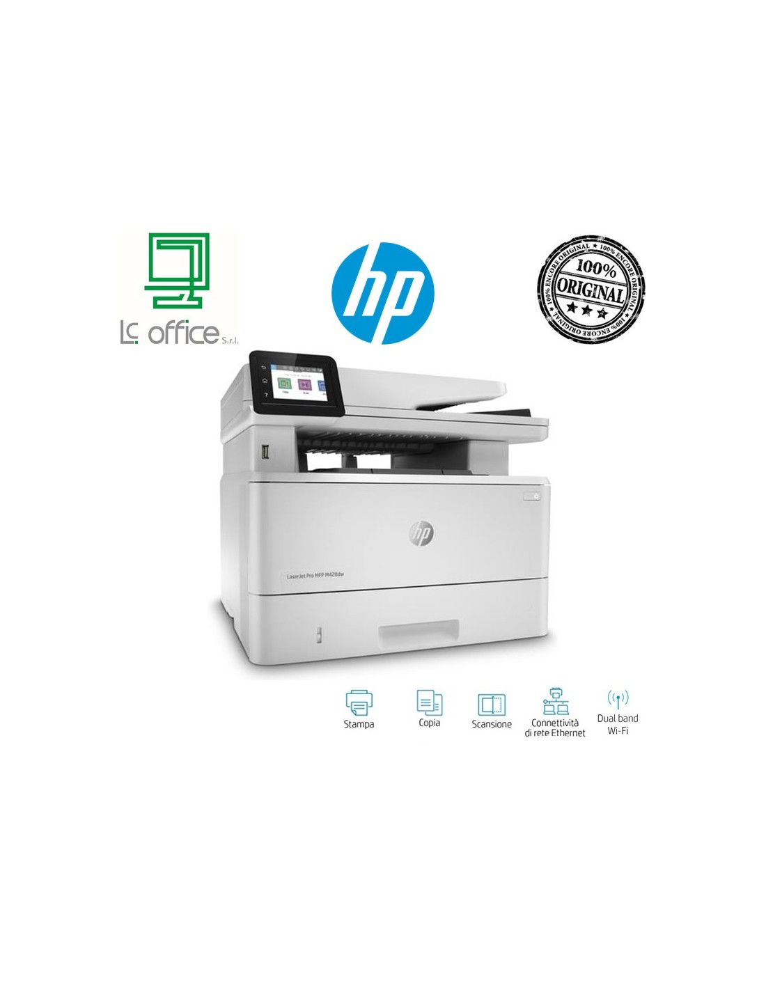 HP LaserJet Pro M428dw. Tecnologia di stampa: Laser, Stampa: Mono stampa. Risoluzione massima: 1200 x 1200 DPI. Copia: Mono copia. Risoluzione di copia massima: 600 x 600 DPI. Scansione: Scansione a colori. Risoluzione di scansione ottica: 1200 x 1200 DPI. Funzione duplex: Copia, Stampa. Capacitc di input standard: 900 fogli, Capacitc di output standard: 150 fogli. Wi-Fi. Stampa diretta