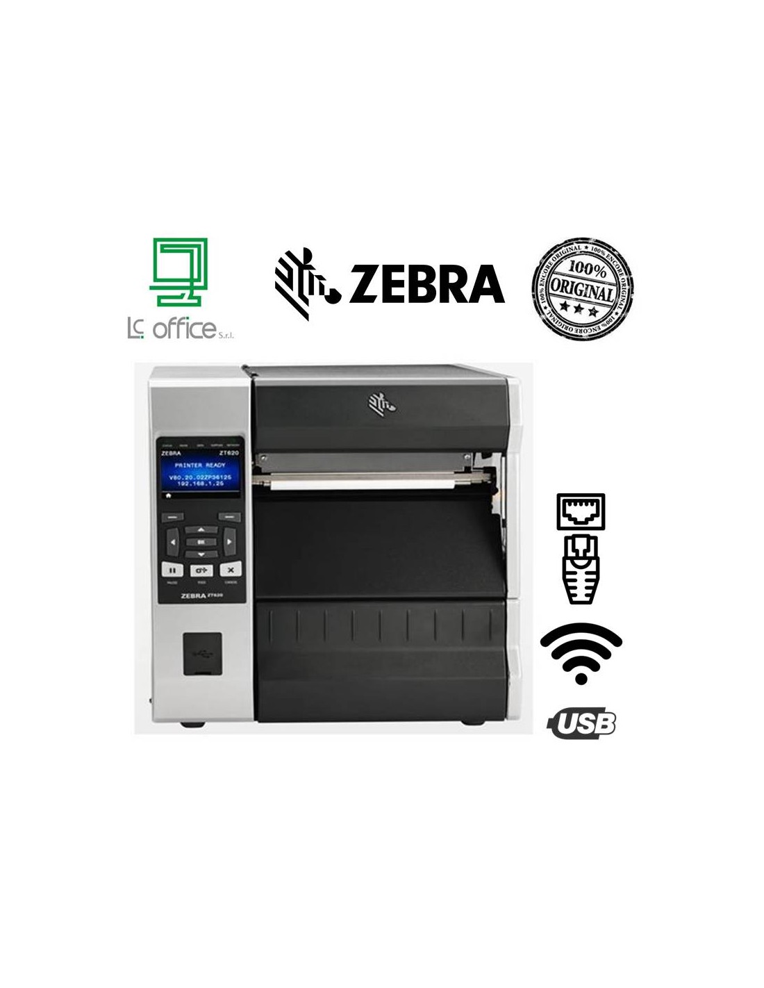 Stampante Zebra ZT620TT 203DPI GIGA ETHERNET SERIALE USB BTLE DISPLAY A COLORI CUTTER - ZT62062-T1E0100