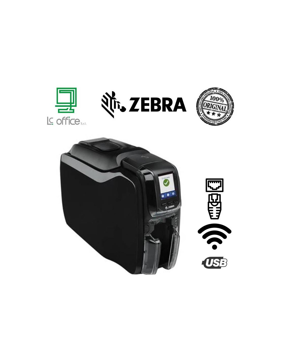 Stampante Zebra ZC350, FRONTE RETRO, WIFI & LAN, USB, EU e UK POWER CORDS, CONTACTLESS MIFARE - ZC36-FM0W000EM0