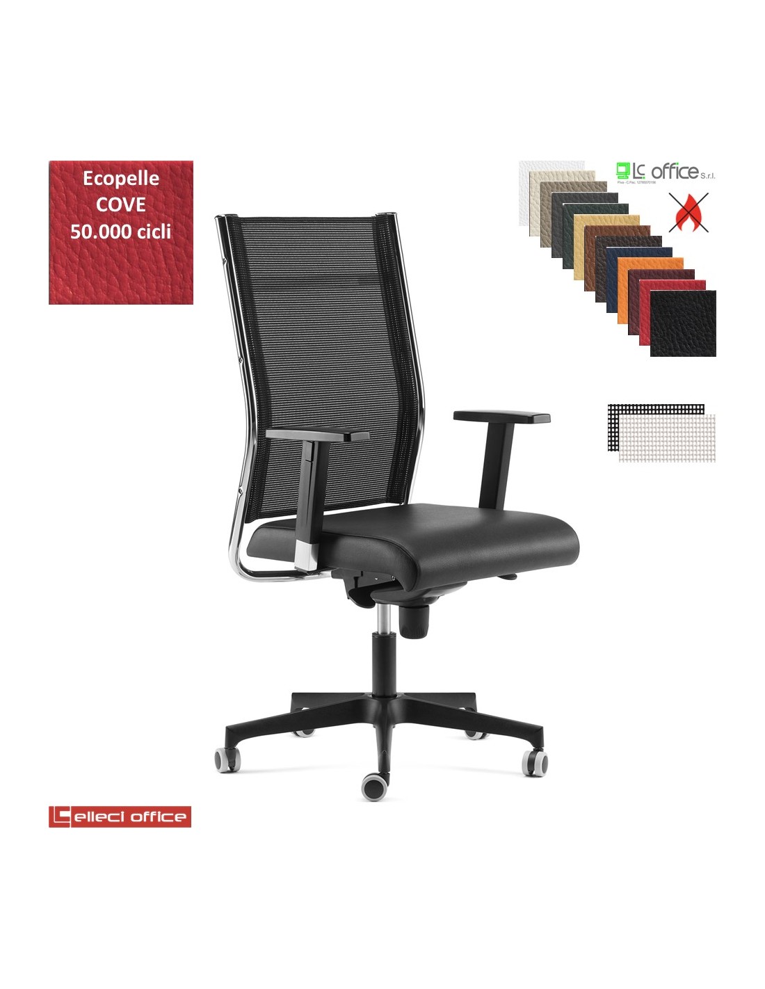 SYNCRONET Poltrona direzional movimento sincro multiblock braccioli regolabili con pad scorrevole, base nylon rivestimento della seduta in ecopelle Cove
