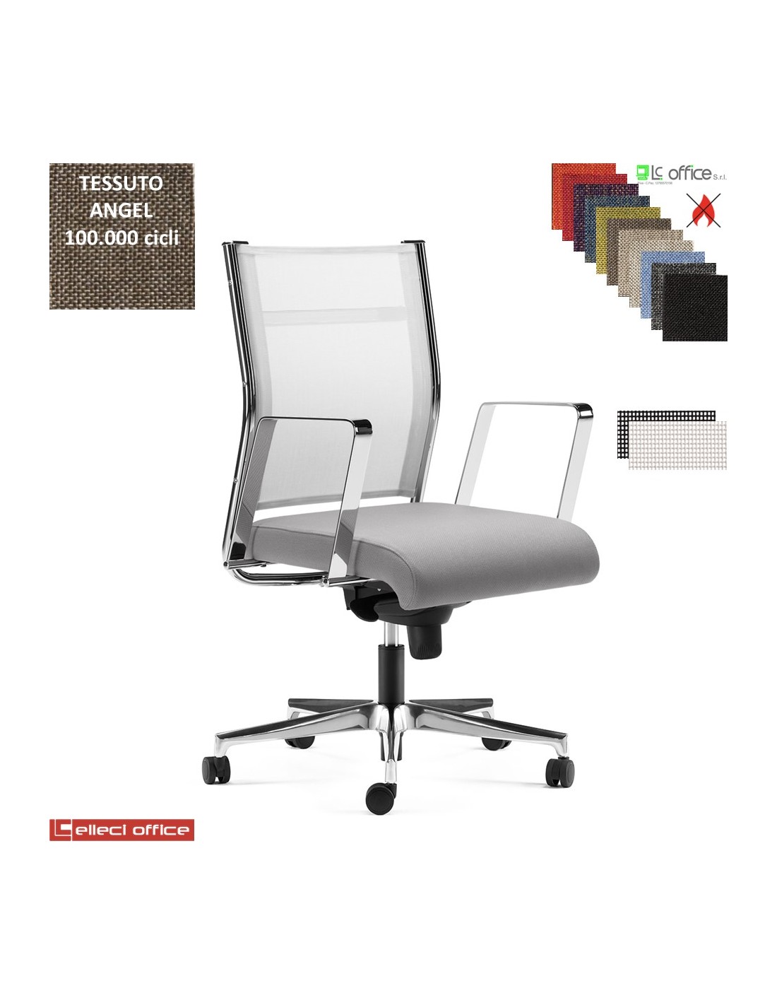 SYNCRONET Poltrona semi direzionale con movimento sincro multiblock braccioli fissi in acciaio cromato base alluminio rivestimenti del sedile in tessuto ANGEL Class 1 IM
