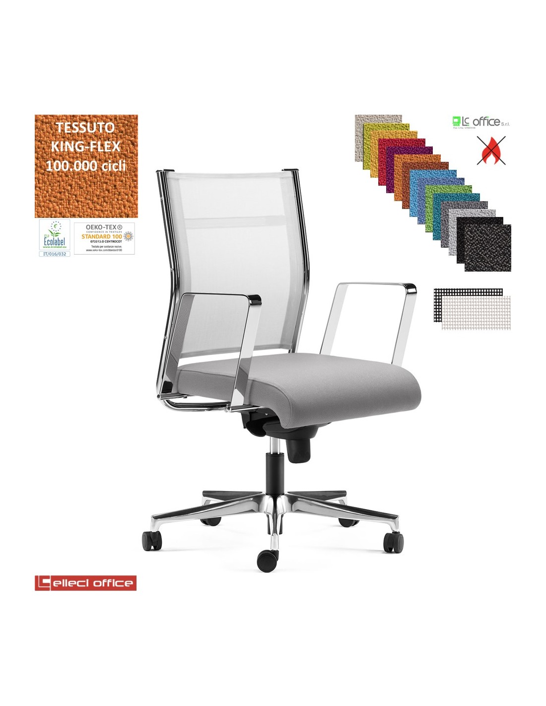 SYNCRONET Poltrona semi direzionale con movimento sincro multiblock braccioli fissi in acciaio cromato base alluminio rivestimento Tessuto King Flex omologato Class 1 IM
