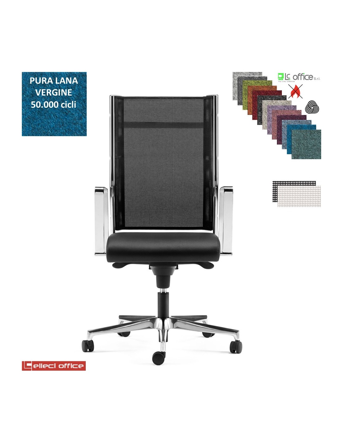 SYNCRONET Poltrona direzionale movi. sincro multiblock braccioli fissi acciaio cromato base alluminio rivestimento Lana vergine Class 1 IM