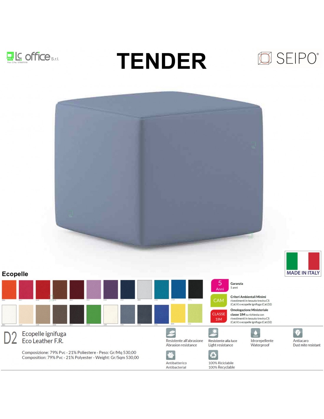 TENDER TN0005 Pouf singolo posto attesa imbottito 4 Piedini nylon scomparsa SEIPO ECOPELLE D2