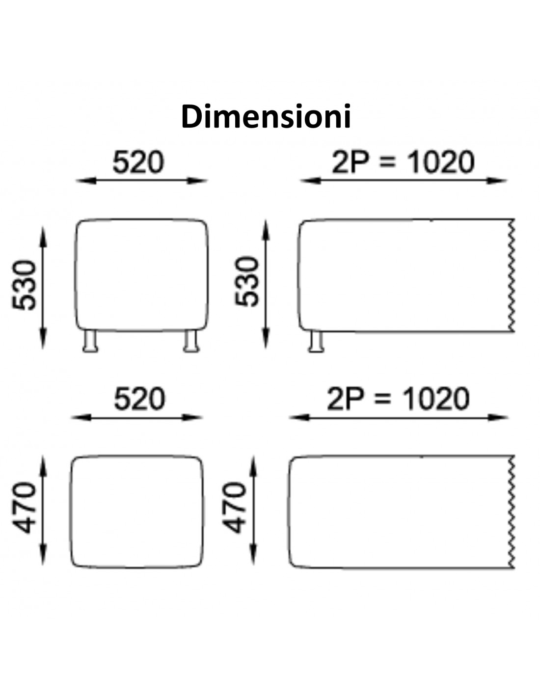TENDER TN0006 Pouf 2 posti attesa imbottito Base piedini fibre vetro cromati SEIPO Tessuto V