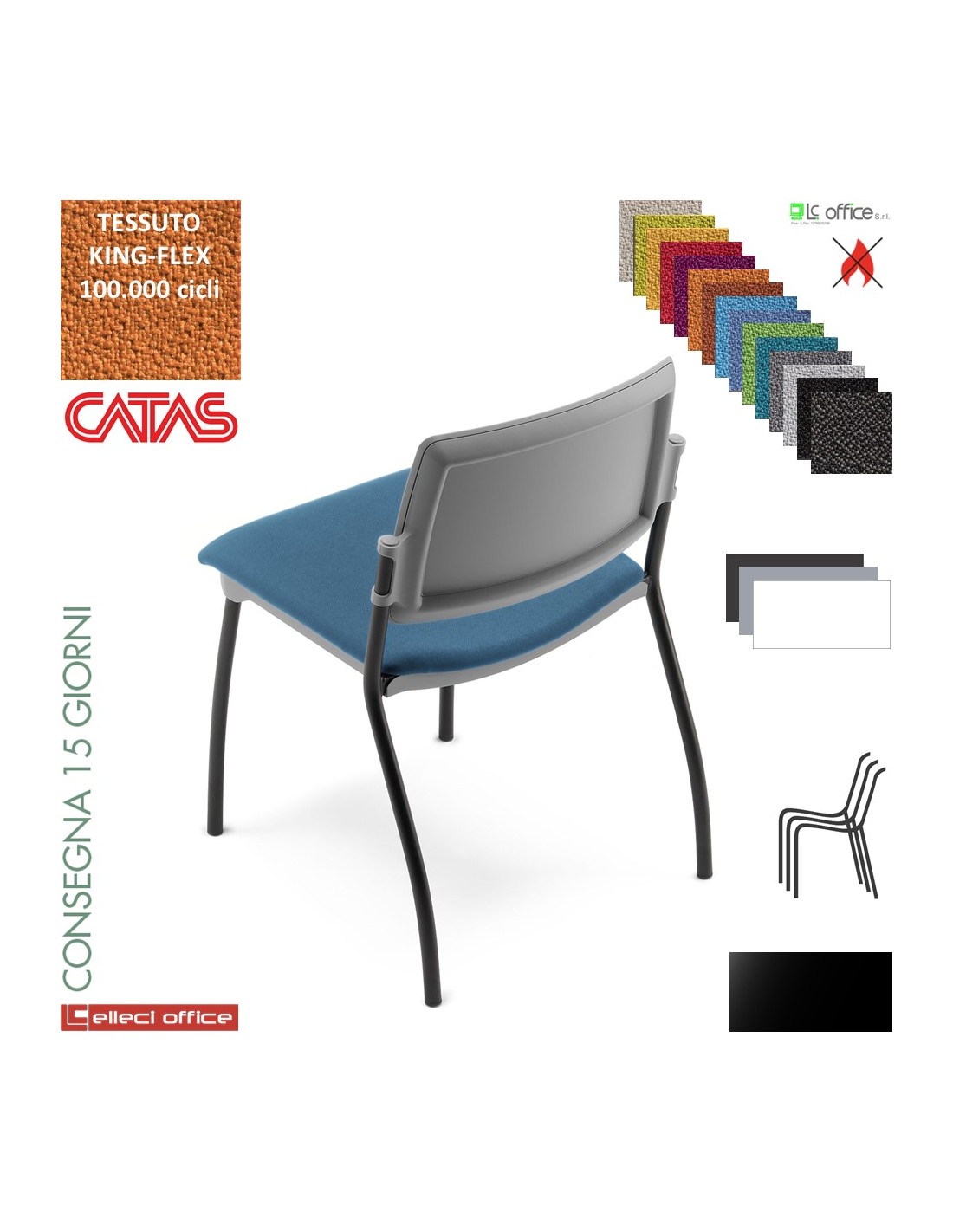 TEOREMA sedia impilabie schienale in polipropilene 4 gambe verniciato nero rivestimento tessuto KING-FLEX class 1 IM