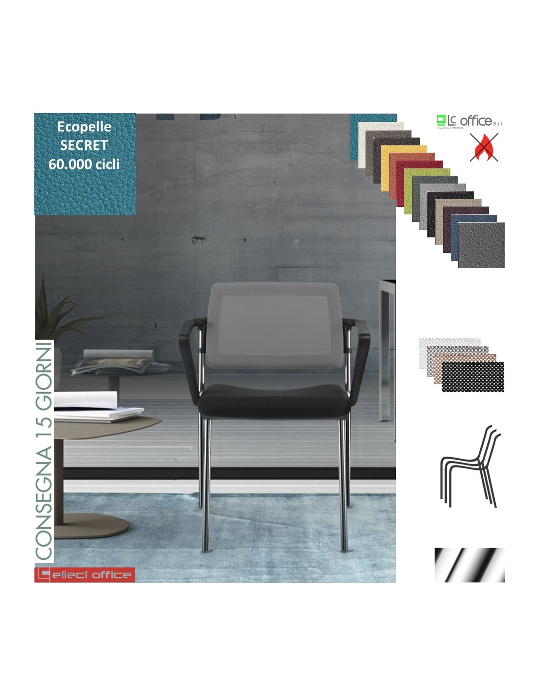 TEOREMA sedia impilabile con schienale rete rivestimento ecopelle SECRET class 1 IM