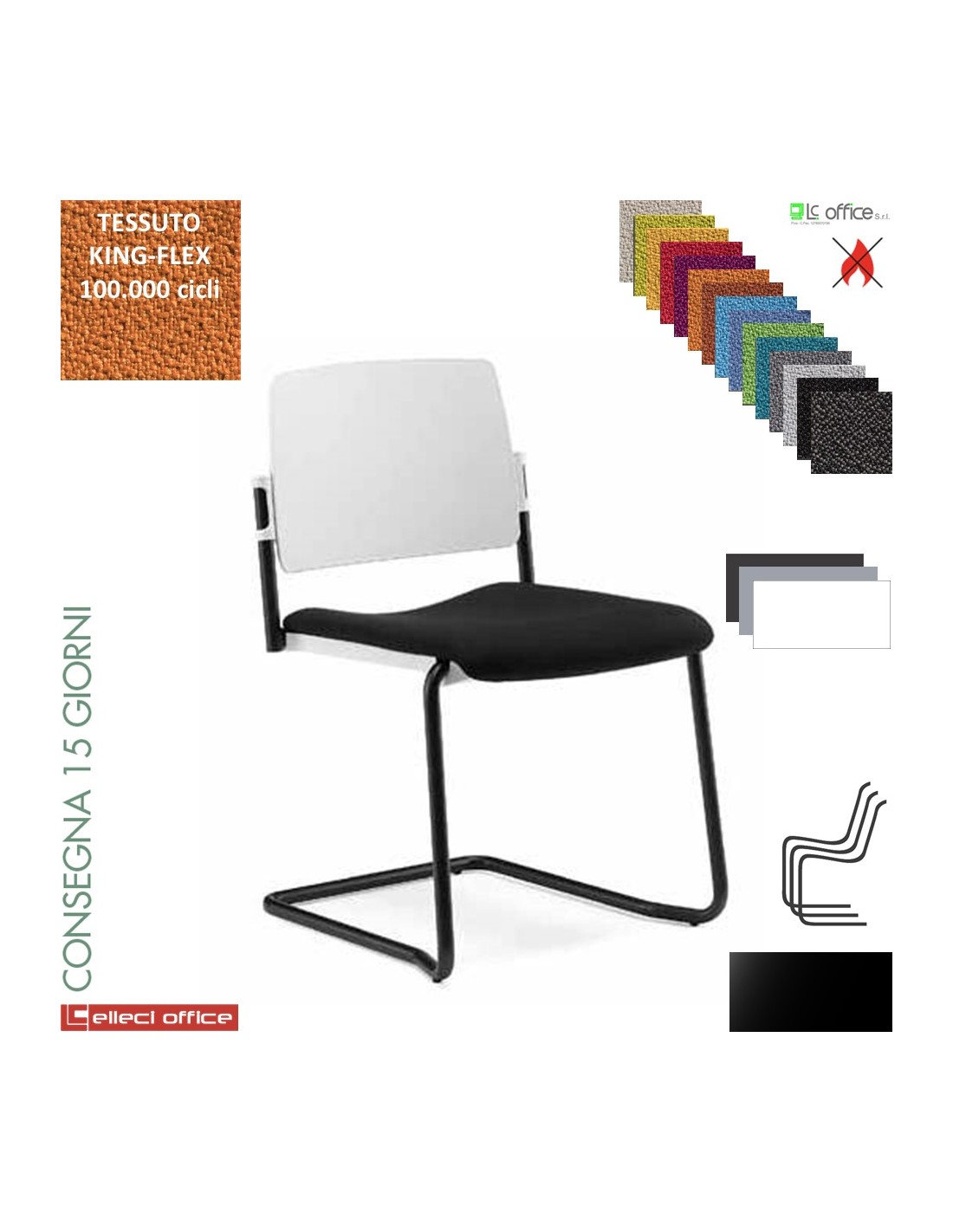 TEOREMA sedia impilabile schienale in polipropilene slitta verniciato nero rivestimento tessuto KING-FLEX class 1 IM