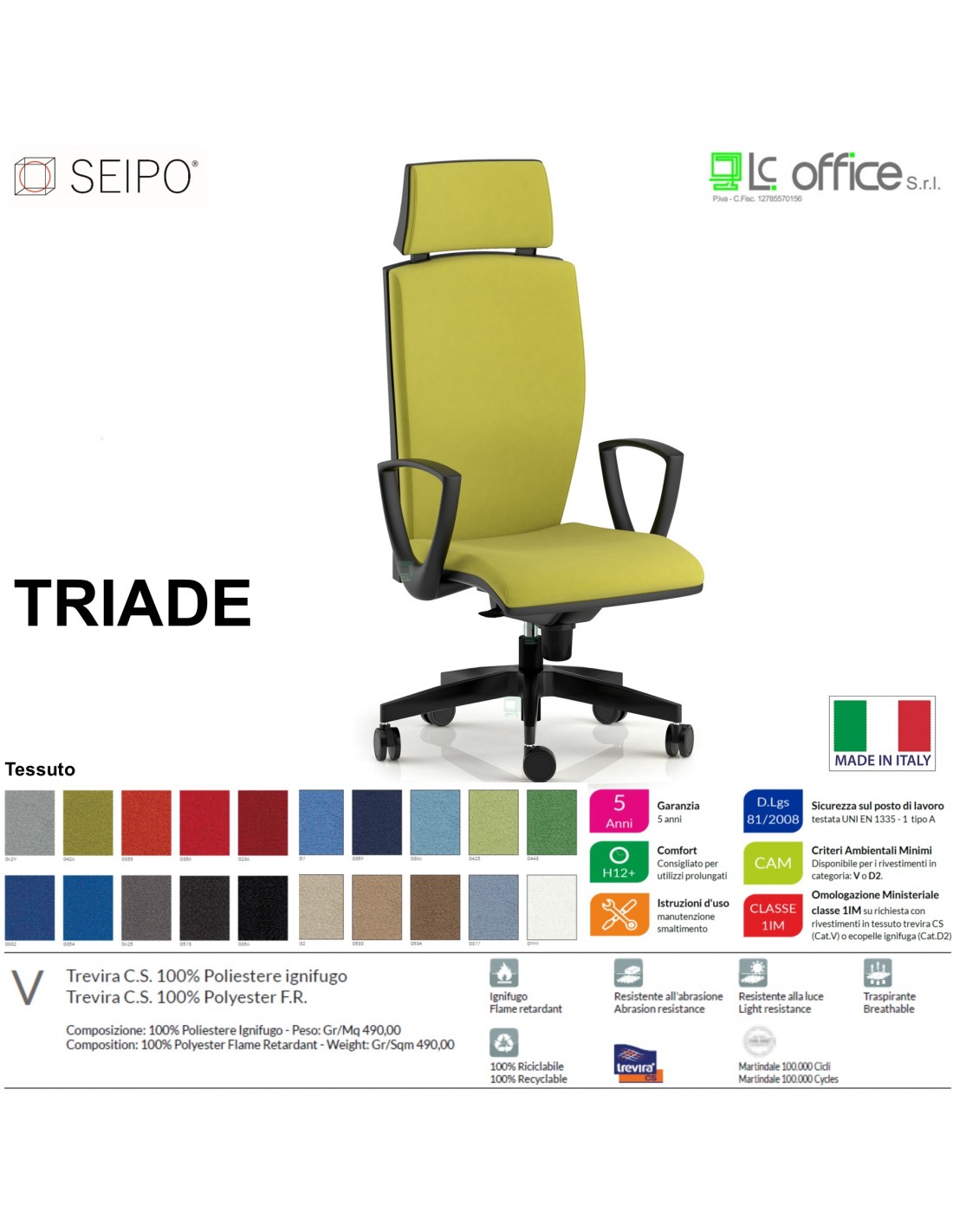 TRIADE TD0042 Poltrona schienale alto con braccioli e poggiatesta Movimento sincro "R4" Base 5 razze nylon SEIPO Tessuto v