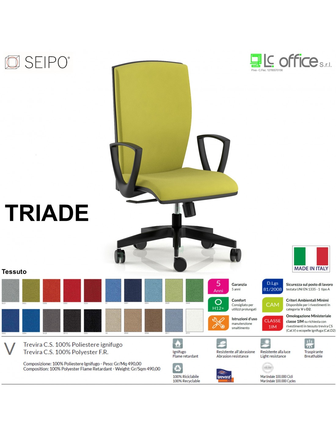 TRIADE TD0044 Poltrona SEMI direzionale braccioli fissi Movimento sincro R2 Base 5 razze nylon SEIPO Tessuto V
