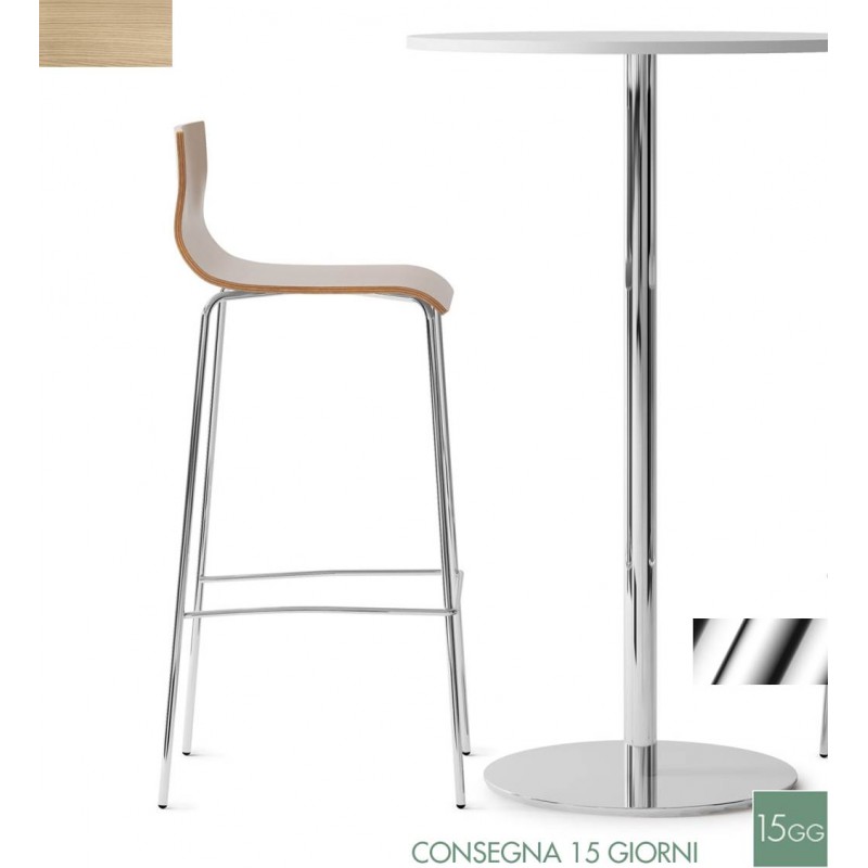 Sgabello, scocca in faggio verniciato naturale, su telaio a 4 gambe cromo